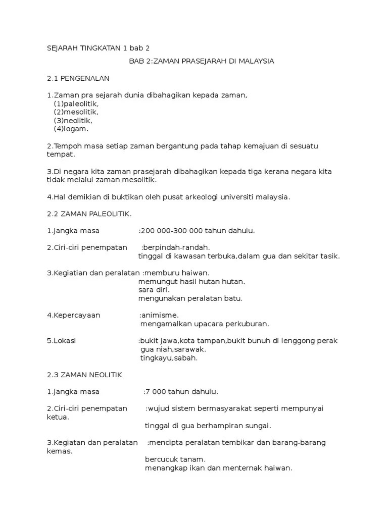 Sejarah tingkatan 1 bab 2 zaman pra sejarah jom belajar secara santai melalui video ringkas #gred a#sejarah#tingkatan1#zamanprasejarahbhg2 jangan lupa . Menyatakan perkembangan zaman prasejarah di malaysia iaitu zaman paleolitik, zaman neolitik. Study with quizlet and memorize flashcards terms like zaman prasejarah dapat dibahagikan kepada dua, iaitu, zaman batu merujuk kepada, tahap zman batu . Tingkatan 1 bab 3 : Dalam video ini, anda akan didedahkan dengan :3.1 : Play this game to review asian history. View t1 bab 3.docx from sejarah 123 at smk khir johari. Pada zaman bilakah peralatan batu . 0 201520005000300k 200k masihi zaman logam . Bab3 zaman prasejarah sejarah tingkatan 1. Add to my workbooks (24) download file pdf